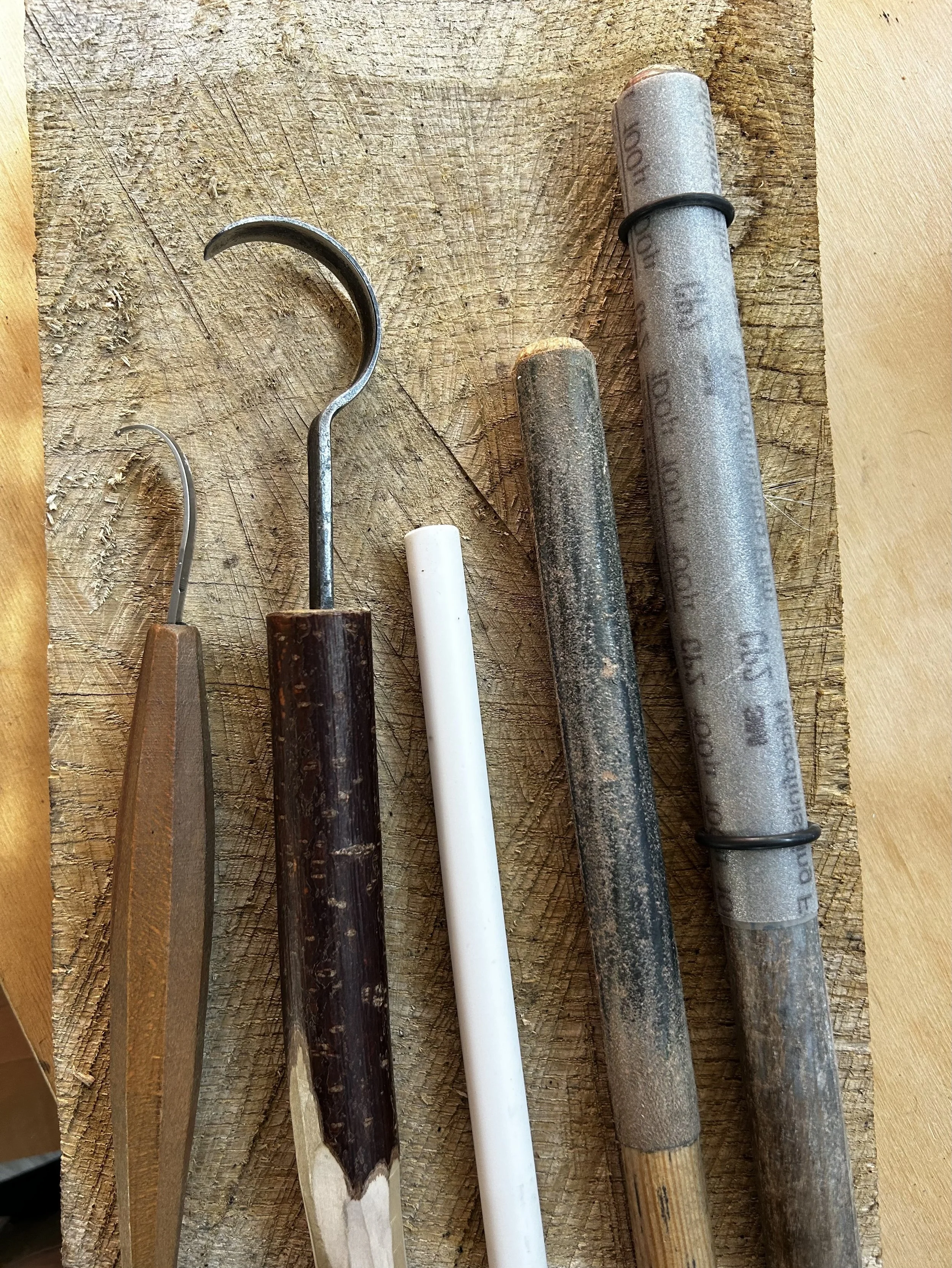 This course will cover sharpening the main tools in the green wood carver’s toolbox; Axes, sloyd knives, hooks and gouges, all of which present their own challenges. We will discuss bevel angles, sharpening materials and media and what actually constitutes a sharp edge.